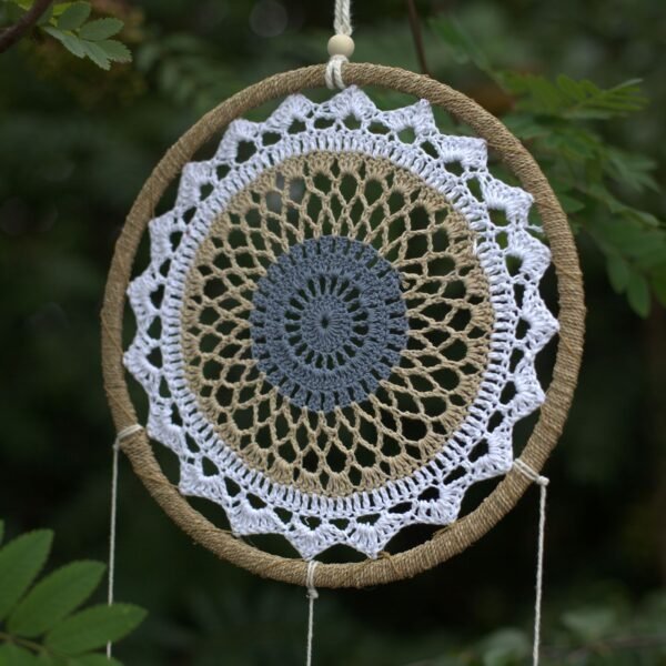 Gracias a su combinación de materiales naturales y colores apagados, este atrapasueños se adapta a la perfección en salones, terrazas cubiertas o dormitorios que busquen una decoración con personalidad y calma. Es ideal para quienes aprecian los detalles hechos con elementos de la tierra y desean un objeto decorativo que destaque por su calidad táctil y su diseño artesanal único.