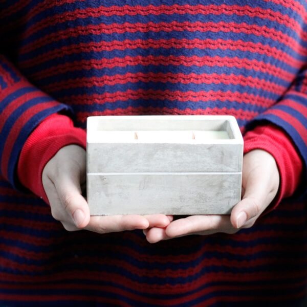 El diseño de la maceta de hormigón permite reutilizarla para integrarla en la decoración una vez que se consume la vela.