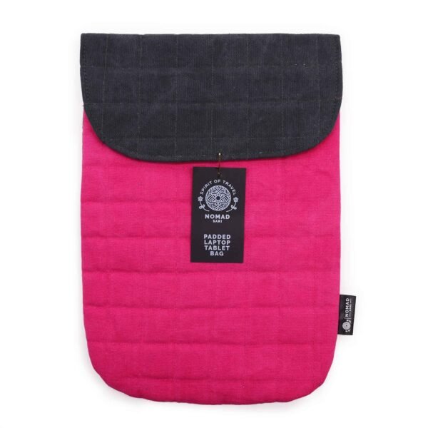 Vibrante y pensada para el uso diario, esta funda acolchada para laptop en rosa chocante aporta un toque de color a la protección práctica de tus dispositivos. Está hecha a mano en India con algodón lavado a la piedra de 14 oz y cuenta con un acolchado suave que ayuda a mantener el portátil o la tableta más protegido durante el transporte. El contraste con la solapa en color carbón le da un acabado moderno y equilibrado, ideal tanto para uso personal como para regalar.