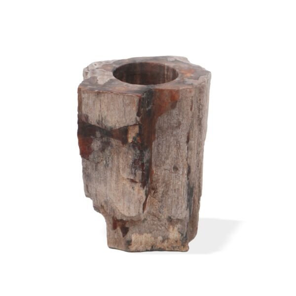 Portavelas de Madera Petrificada Alto – Pieza Única Fósil