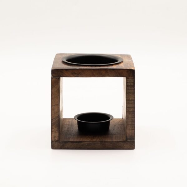 Este quemador de aceite cuadrado es una hermosa mezcla de artesanía natural y simbolismo espiritual. Hecho a mano con madera de mango obtenida de forma sostenible, el quemador presenta un veteado rico y oscuro que realza la belleza orgánica de la madera.