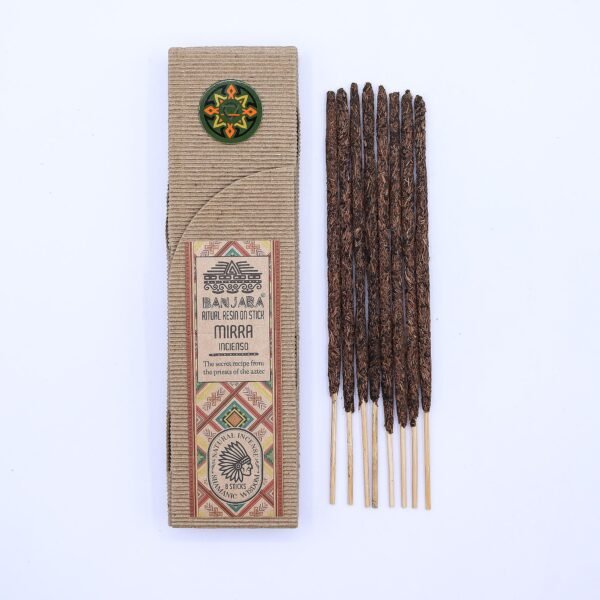 Invita tranquilidad y claridad a tu espacio con el aroma sagrado de la mirra. Fabricado en la India, estos palitos de incienso de resina liberan una fragancia profunda y cálida que favorece la purificación, la conexión con la tierra y la reflexión espiritual.