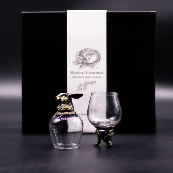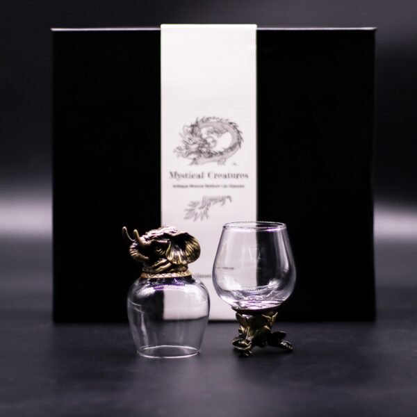 Descubre la fusión perfecta entre funcionalidad y simbolismo ancestral en estos vasos que capturan la esencia de criaturas legendarias. Cada uno presenta un recipiente de cristal claro montado sobre una base ornamentada de efecto bronce antiguo, evocando poder y tradición en cada detalle. Ideales para elevar momentos especiales, sirven para licores, cócteles o catas, con una capacidad precisa de 100 ml que invita a saborear con estilo.