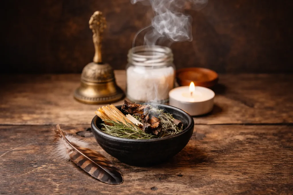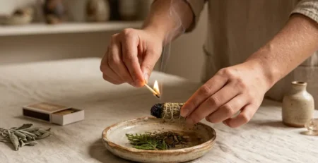 Quemar hierbas secas (como salvia, palo santo o laurel) es un ritual ancestral para purificar ambientes mediante humo.